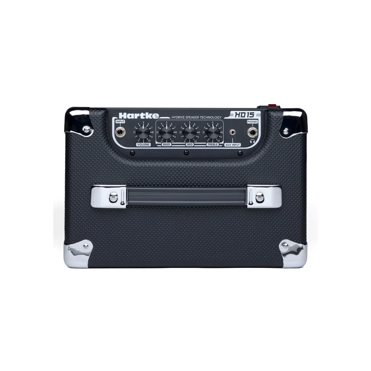 El amplificador para bajo eléctrico HD15 Bass Combo de Hartke combina los altavoces HyDrive ideal para pequeños lugares, salas de ensayo y sesiones de práctica en el cuarto, capaz de enriquecer enormemente las frecuencias bajas. El HD15 (15 vatios, con driver de 6.5") emplea tecnología patentada de altavoces HyDrive de Hartke que ofrece un altavoz de bajo cónico híbrido cuidadosamente diseñado (medio papel, medio aluminio). Al combinar la calidez y la redondez del papel con el golpe y el ataque del aluminio, El diseño El combo ofrece controles de volumen, graves, medios y agudos en su panel de amplificador montado en la parte superior, lo que permite ajustes fáciles. También cuenta con una entrada auxiliar estéreo de 1/8 "para tocar junto con sus pistas favoritas a través de un reproductor de MP3 y una salida de audífonos de 1⁄4" para sesiones de práctica más íntimas. Además, el HD15 tiene un limitador incorporado para garantizar un funcionamiento constante del amplificador a niveles seguros. Por último, su carcasa sólida está terminada de manera elegante con una elegante rejilla metálica perforada R4726:R4730 y un asa de transporte moldeada. El nuevo HD15 es un amplificador de bajo que ofrece un diseño elegante y práctico, ideal para espacios reducidos y salas de ensayo. El HD15 mantiene el compromiso Hartke para producir amplificadores con graves de alta calidad y con una durabilidad excepcional. ENTRADAS instrumento Jack 1⁄4″ y auxiliar de 1/8″ SALIDAS Audífonos Jack 1⁄4″ POTENCIA 15 watts DIÁMETRO PARLANTE 6.5″ CONTROLES TONO / VOLUMEN DIMENSIÓNES 316 x 309 x 202 mm