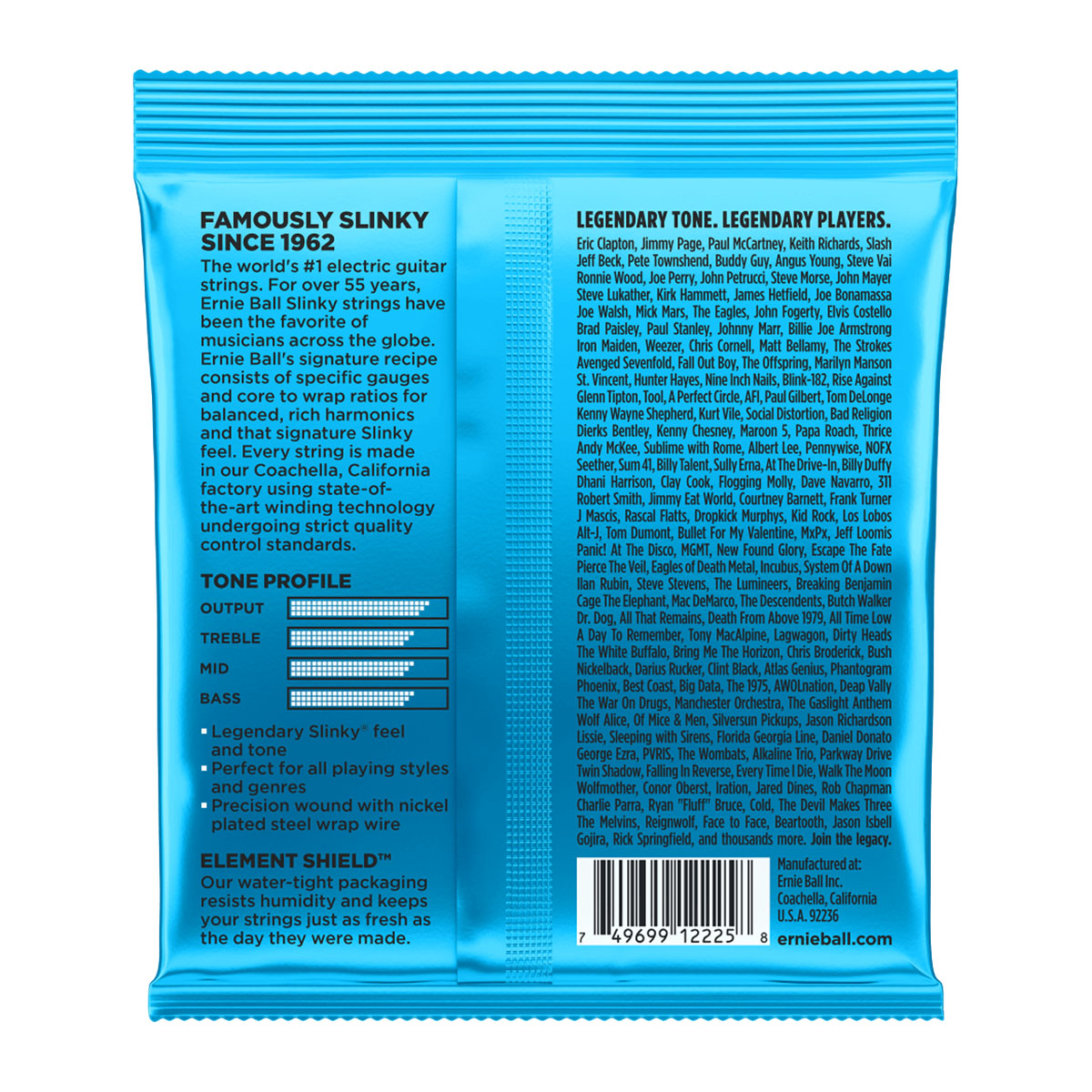 Estas cuerdas son de precisión fabricadas con los más altos estándares y especificaciones, más exigentes para garantizar la consistencia , rendimiento óptimo y larga vida Cuerdas Slinky, están hechas de alambre de acero niquelado envuelto alrededor de un núcleo de alambre de acero en forma hexagonal . Las cuerdas lisas son de acero al carbono estañado especialmente templado ; produciendo un tono bien equilibrado para su guitarra .