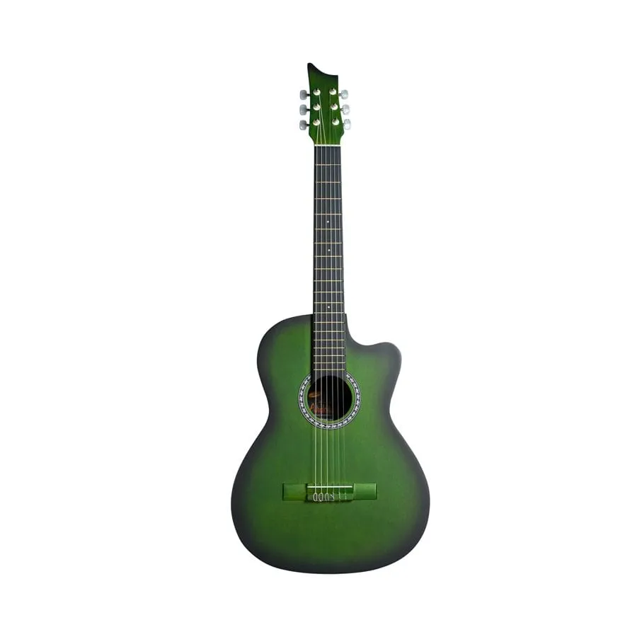 Guitarra de iniciación musical, con muy buenos acabados y excelente sonoridad. Disponibles en diferentes colores. TAPA: CEDRO, AROS: CEDRO, FONDO: CEDRO, MÁSTIL: CEDRO, DIAPASÓN Y PUENTE: PARDILLO, CLAVIJERO: METÁLICO, ENCORDADO: NYLON ESTANDAR, BOQUILLA: ADHESIVA, INCLUYE FORRO DE LONA TIPO MORRAL, PICK.