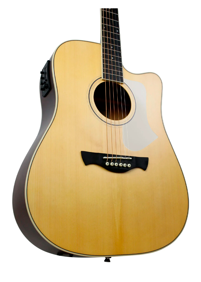 Construido en el formato Folk Dreadnought con Cutaway, tiene un formato que ofrece el mayor sonido-versatilidad de la línea.