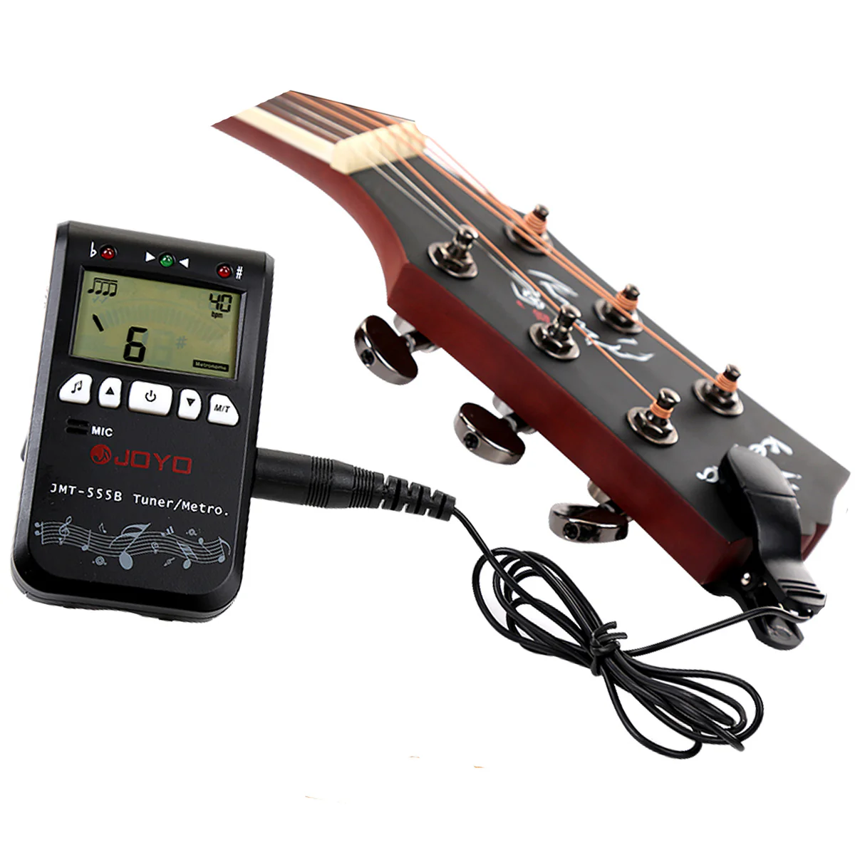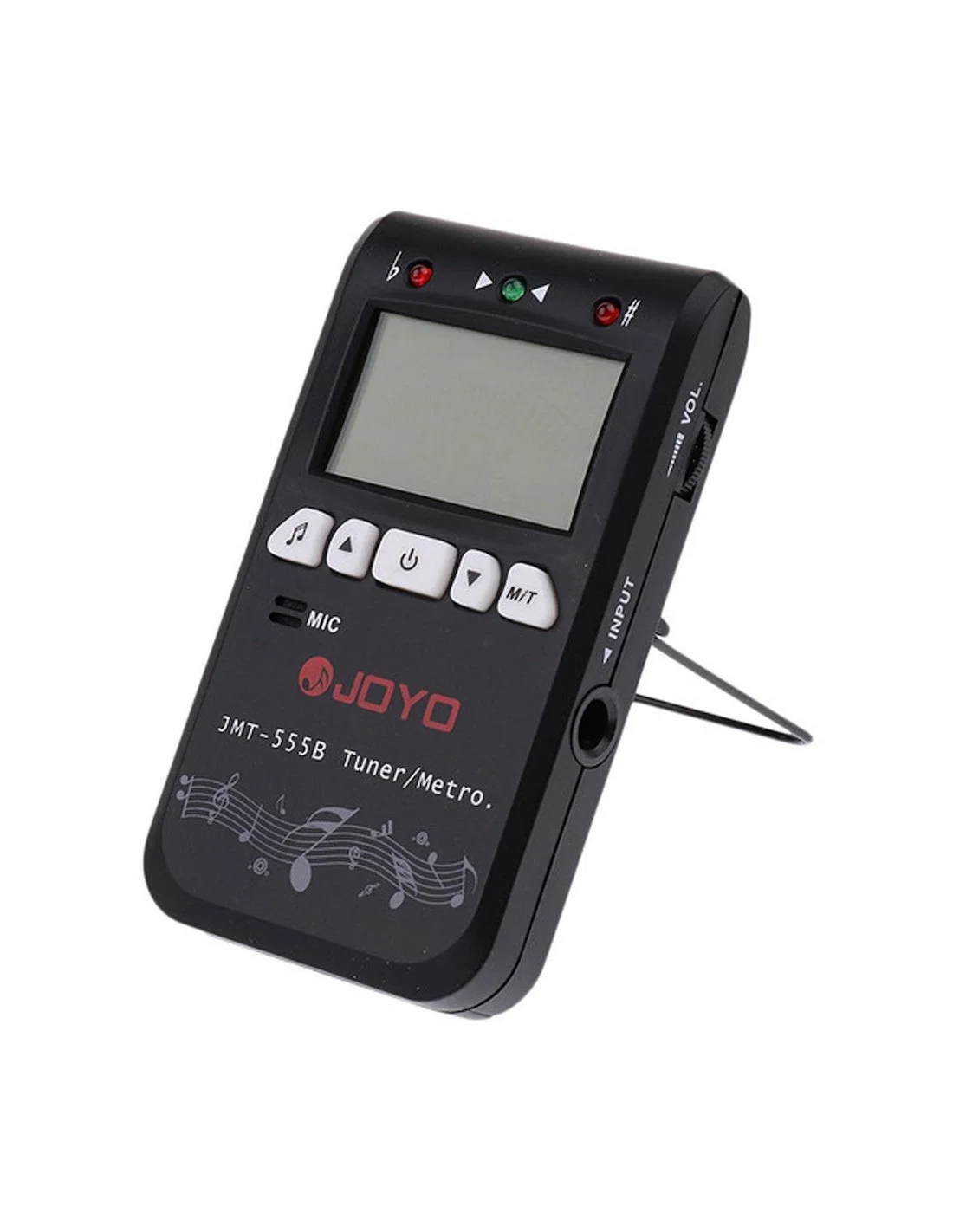 Metrónomo, afinador y generador de tonos JOYO JMT-555B cromático para guitarras, bajos, violínes, ukeleles y similares. Incluye micrófono de contacto para afinar el instrumento