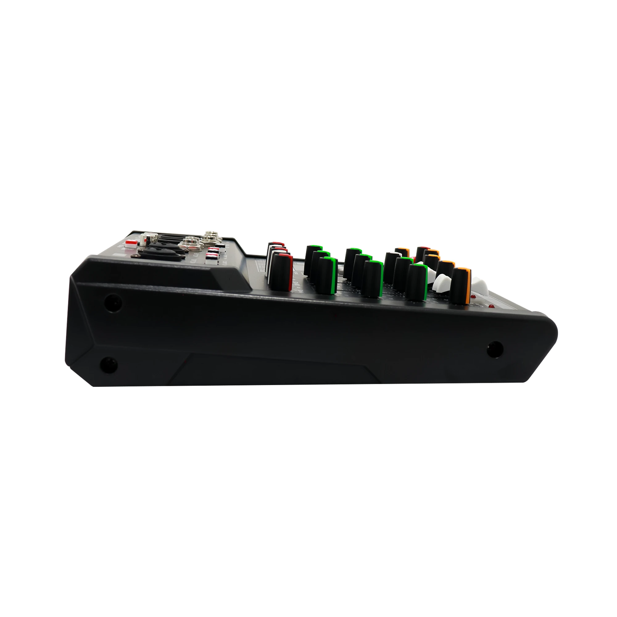 El PM04 es un mezclador compacto de 4 canales, ideal para aplicaciones en vivo y grabaciones de estudio. Incluye conectividad Bluetooth, un ecualizador gráfico de 5 bandas, y 99 efectos digitales programables, lo que lo convierte en una opción versátil y eficiente para pequeñas presentaciones o grabaciones.