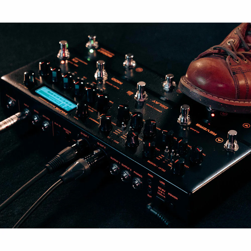Procesador de efectos para guitarras eléctricas Número de presets: 96 Pantalla LCD Simulaciones de amplificador: 27 Simulaciones de micrófono: 4 Efectos simultáneos: 10 Tipos de efectos: Delay, pitch shift, phaser, chorus, compresor, filtro, reverb y trémolo Salidas: Auriculares, 2 jacks y 2 XLR (balanceadas) Entradas: Pedal de expresión, jack de instrumento y entrada auxiliar Bucle de efectos Entrada/Salida MIDI Conector USB-C Convertidores A/D y D/A y circuitería analógica Volumen master (panel posterior) Formato: Pedalera multiefectos Carcaza metalica y resistente Peso: 1,65 kg Dimensiones: 312 x 164 x 65 mm Incluye fuente de alimentación de 9 V DC Excelente sonido