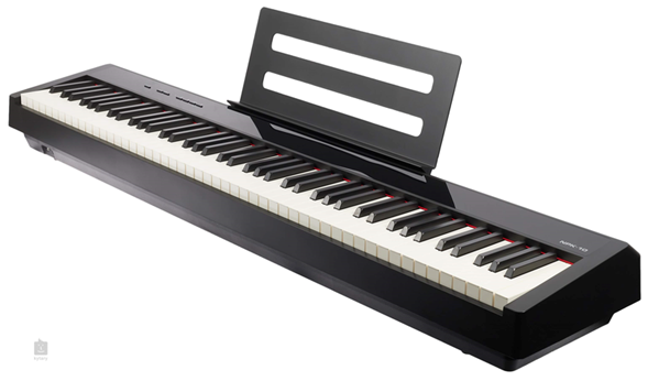 Piano digital de 88 teclas pesadas con acción de martillo escalado de triple sensor WKJ-03, diseñado para simular el tacto de un piano acústico. Ofrece 12 sonidos de alta calidad, 5 tipos de sensibilidad táctil y conectividad Bluetooth para trabajar con apps y dispositivos móviles, en un formato ultraportátil.