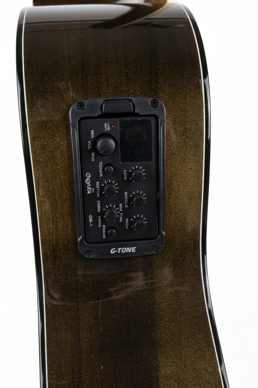 Ecualizador activo con sistema de frecuencia completo para nivelar bajos, medios y brillo, afinador incorporado.