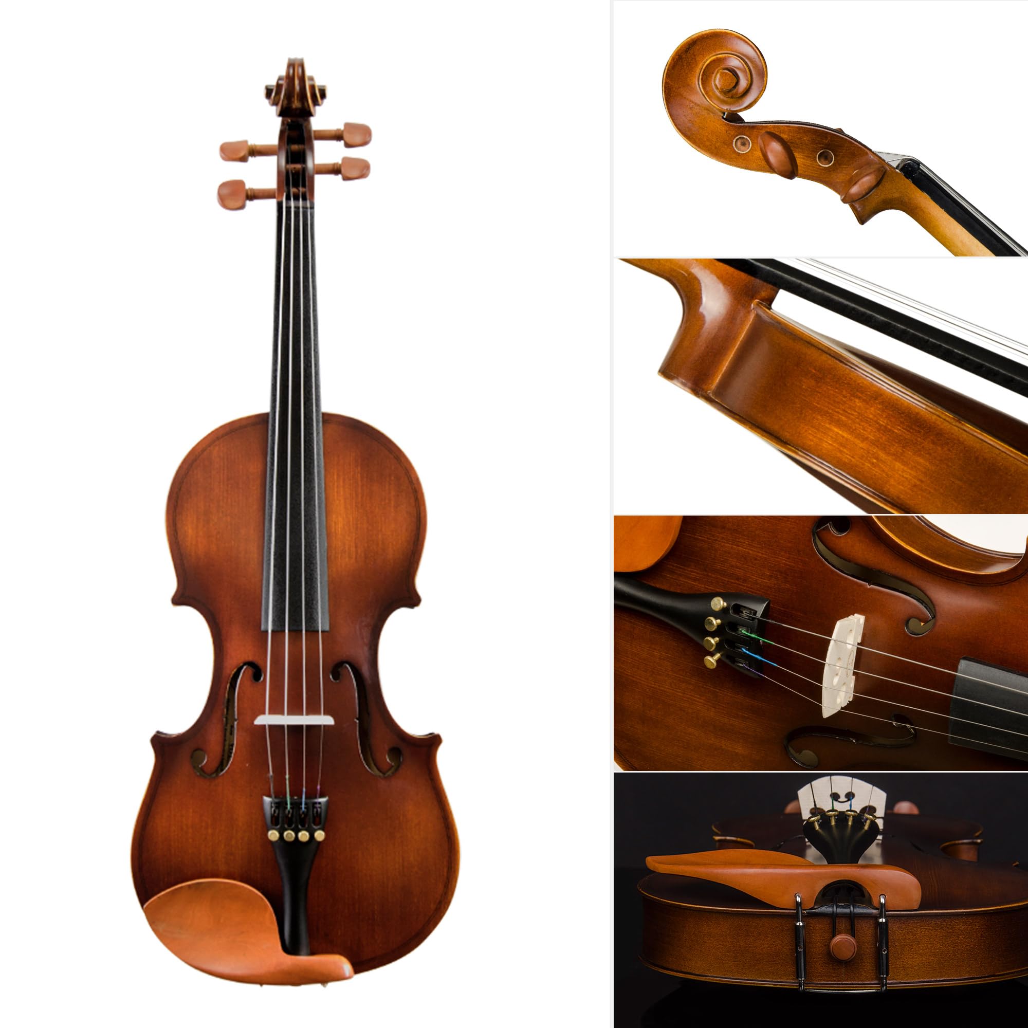 Violin para uso académico, tapa frontal de pino abeto nevado, aros y fondo de arce, clavijas y mentonera en madera de Jujube, diapasón de madera sólida teñida, tiracuerdas con microafinadores, cuenta con Tiracuerdas con microafinadoresdisponible en diferentes medidas 4/4, ¾, ½, ¼, 1/8