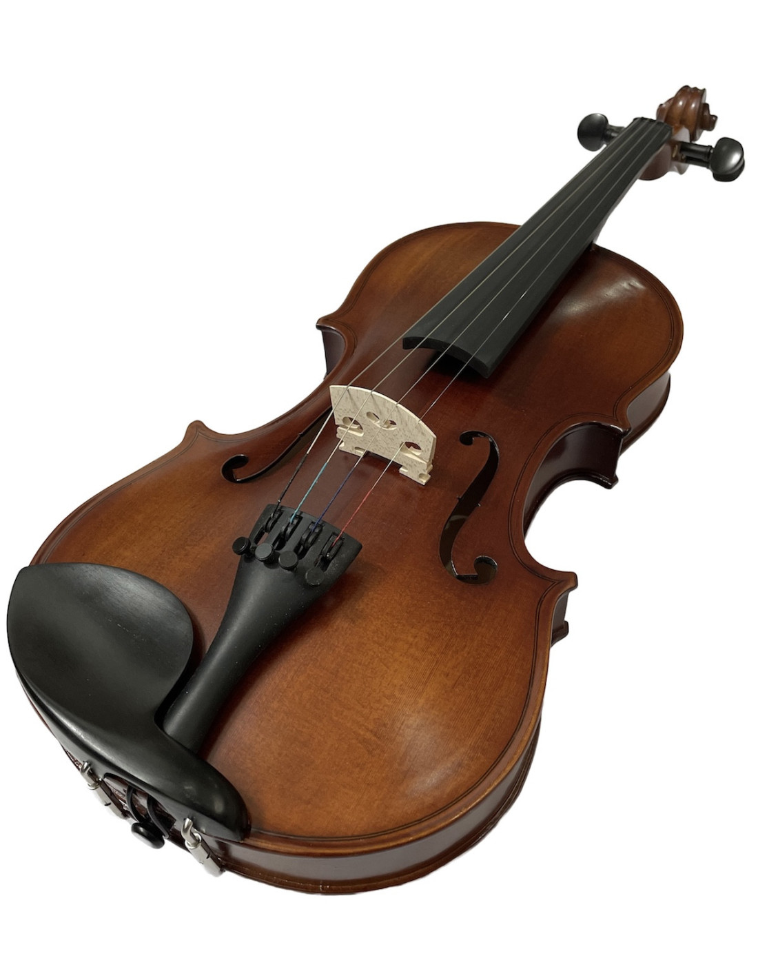 Violín ideal para el aprendizaje, excelente acabado y sonoridad. Tapa frontal de abeto laminado, microafinadores en tiracuerdas, incluye arco, puente, colofonia y estuche semiduro.